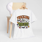 Tricking for Treats Halloween T-Shirt | Unisex Heavy Cotton Tee for Fall Festivals & Spooky Fun