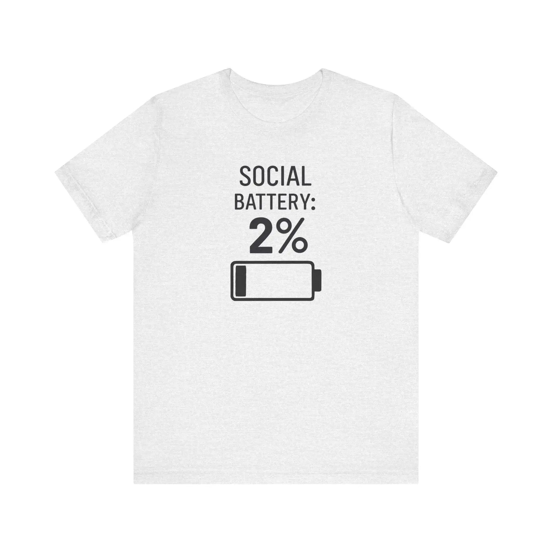 Social Battery Low T-Shirt | Funny Unisex Jersey Tee for Introverts & Casual Wear