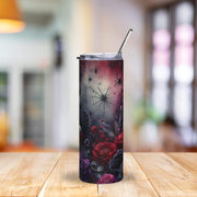 Gothic Floral Spiderweb Tumbler | 20oz Stainless Steel Cup with Dark Roses & Skull Accents