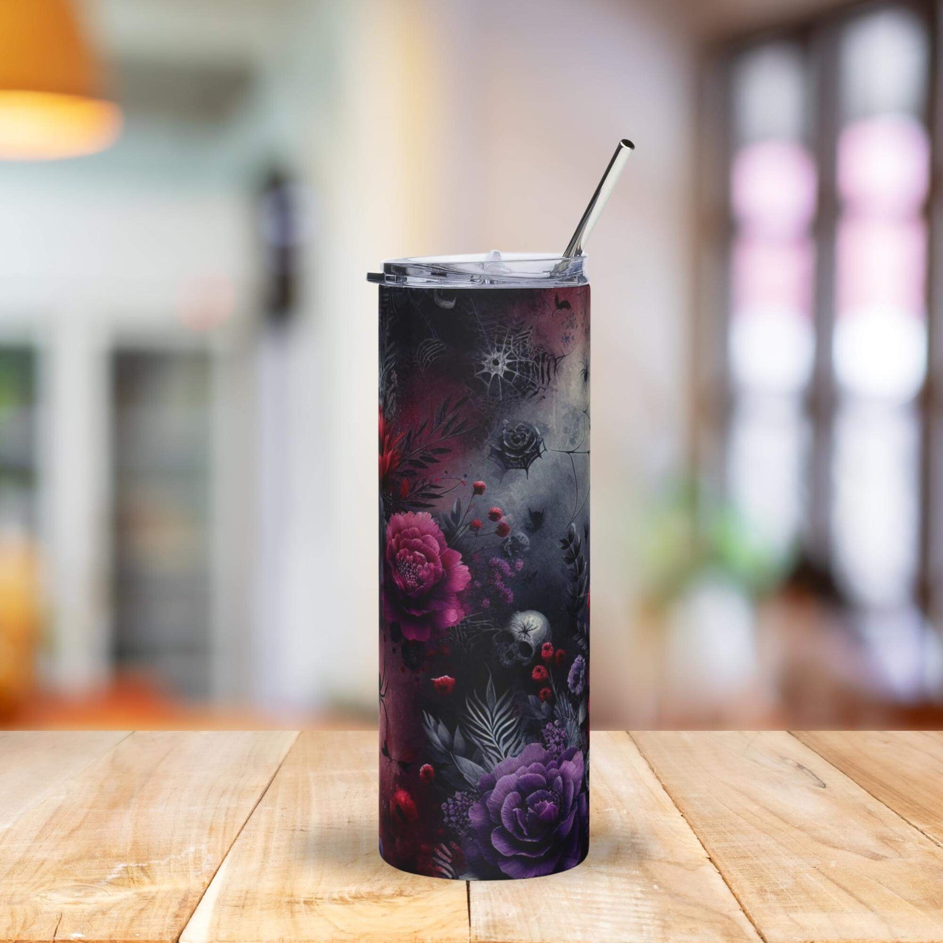 With a spill-resistant lid and reusable straw, this tumbler is as practical as it is captivating. Whether you’re at home, in the office, or on the go, it’s a darkly elegant statement piece for your drinkware collection.