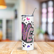 Love Graffiti Tumbler | 20oz Stainless Steel Cup with Bold Hearts & Animal Print