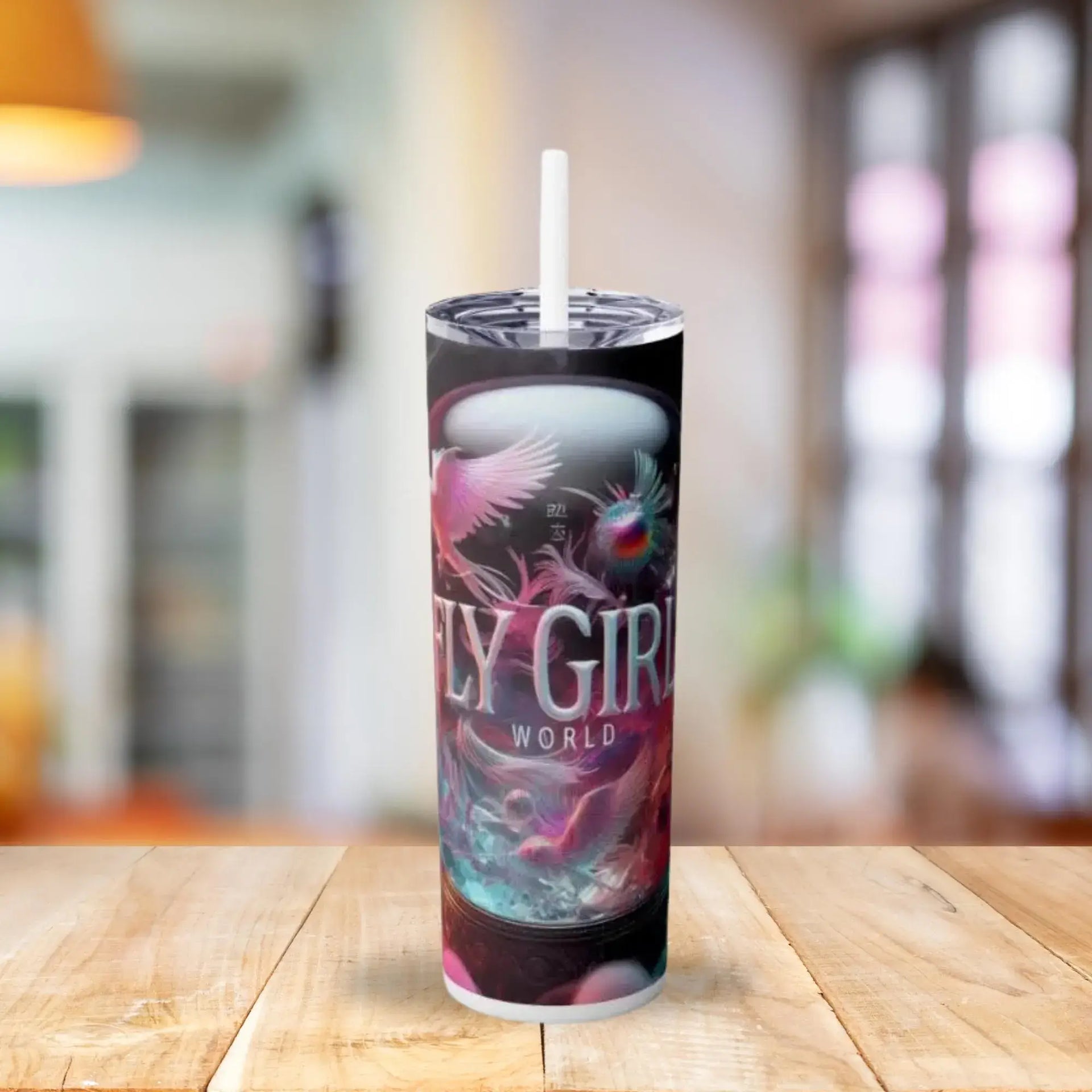Fly Girl World Tumbler | 20oz Stainless Steel Cup with Surreal Fantasy Art