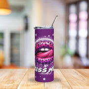 Kiss Me Purple Leopard Lips Tumbler | 20oz Stainless Steel Cup with Starry Galaxy Design