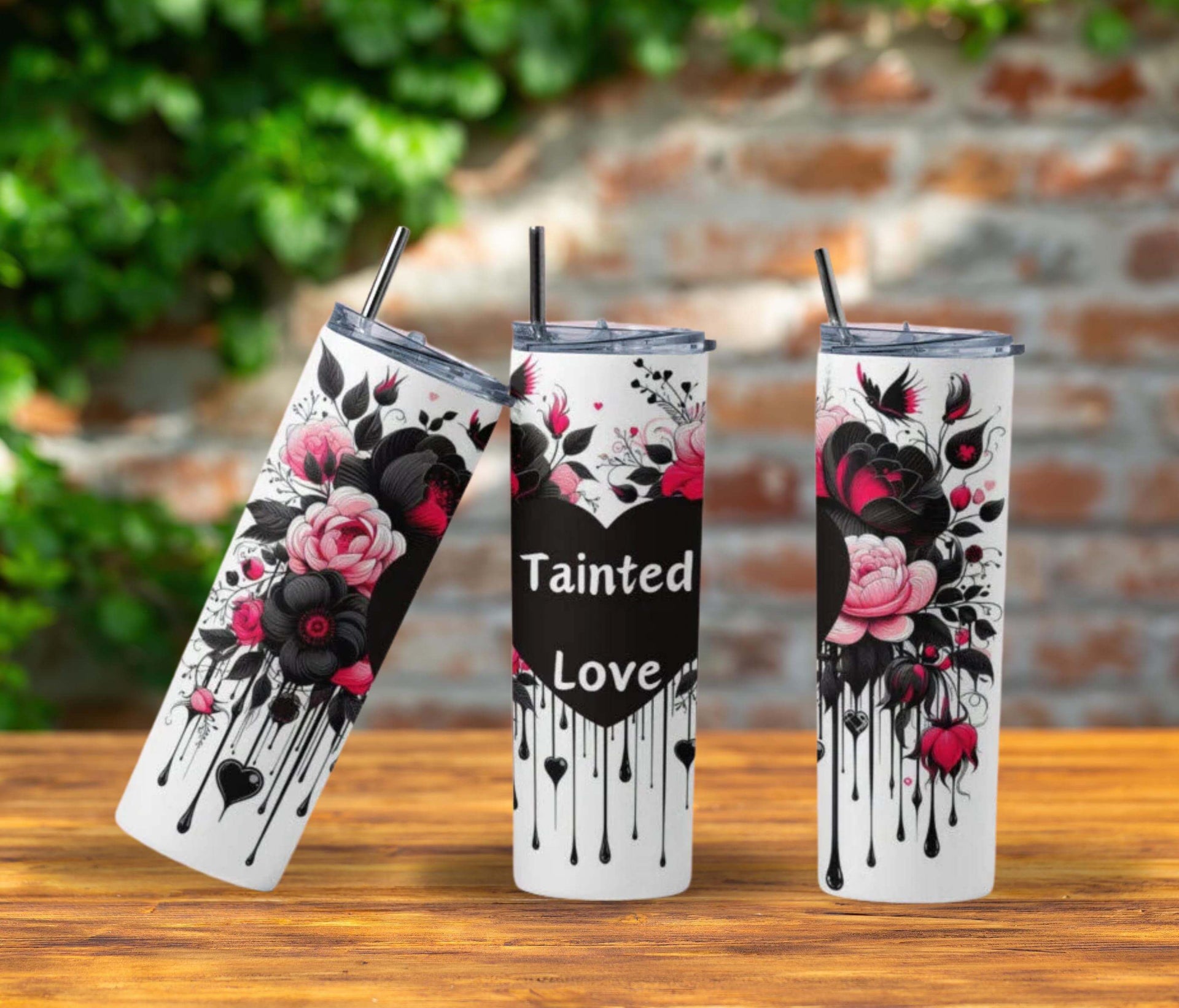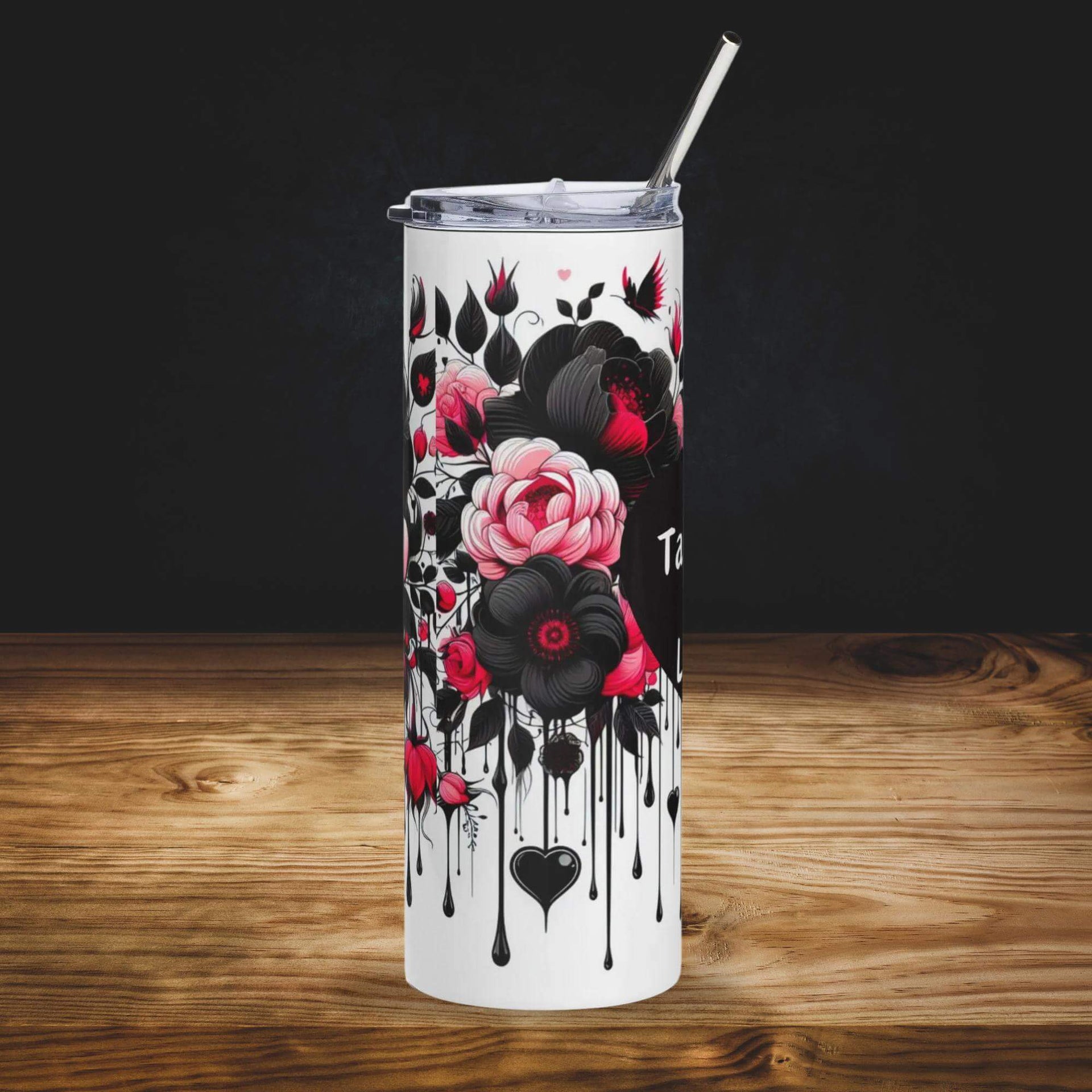 Tainted Love Tumbler | 20oz Stainless Steel Cup with Gothic Floral & Heart Design